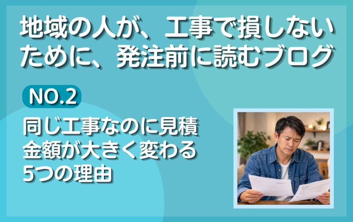 今回は、同じ工事なのに見積金額が大きく変わる主な理由を、5つに分けて分かりやすくお伝えします。